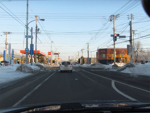 末広町の南岸通り、西4号線バス停前から野付牛自動車学校方向