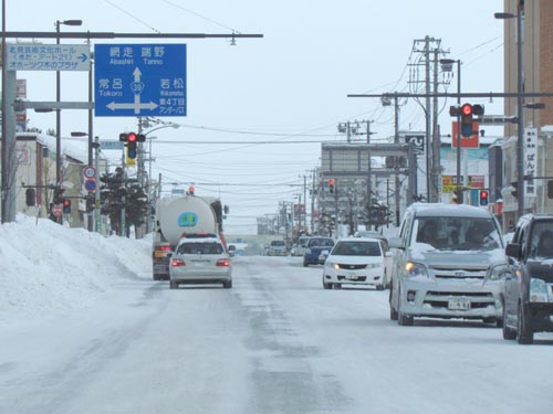 ちなみに、国道243号美幌峠は午前11時20分現在、天気は曇り、視界はやや良好、積雪深36cm 気温マイナス9℃、路面温度マイナス6℃、風速20m、路面は、舗装は出てるが吹きだまりあり |