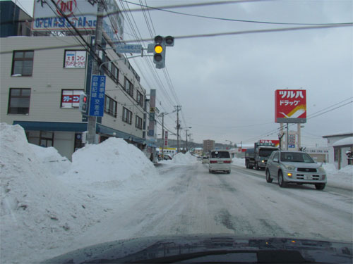 午前7時50分、とん田通り、北見中央病院横
