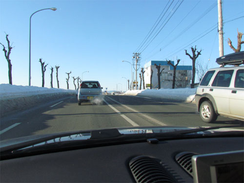 右折すると野付牛自動車学校、写真奥が訓子府・置戸・足寄方面