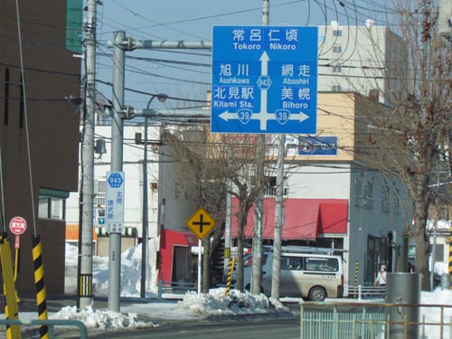 前方がJR石北本線高架橋、写真右が北見駅方向