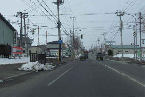 午前7時50分、南岸通り、野付牛自動車学校前から無加川町方向