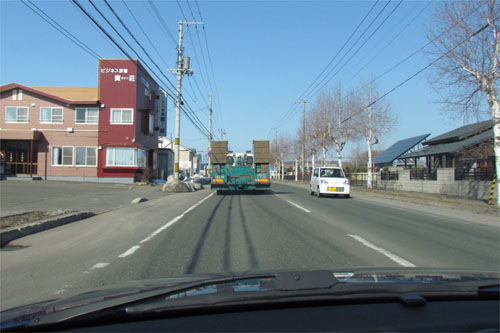 午前7時50分、南岸通り、野付牛自動車学校前から無加川町方向