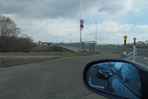 錦町の南岸通り、前方の交差点から向こうが川沿町