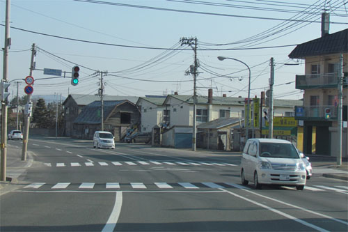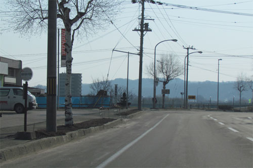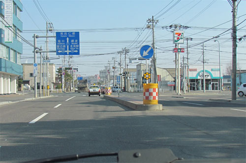 末広町の南岸通り、西4号線バス停前から野付牛自動車学校方向