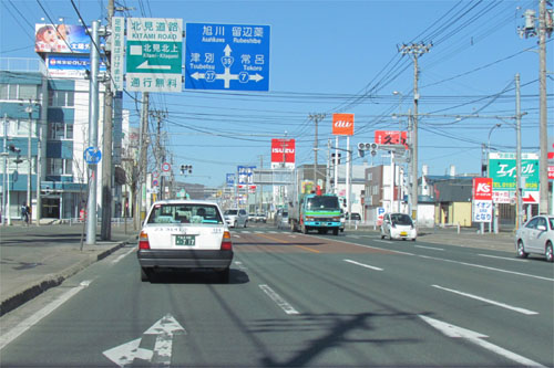 午前7時50分、北4条通りの国道39号交差点から緑園通り方向