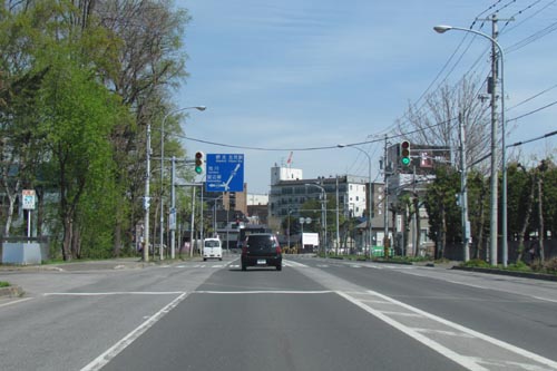 常盤通り、北見市民会館正面ゲート前から国道39号の五差路方向