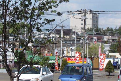 写真奥の建物が北見工業大学
