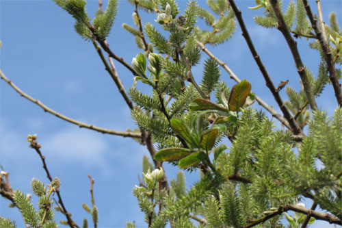 午前8時、自宅物置き横のネコヤナギの木