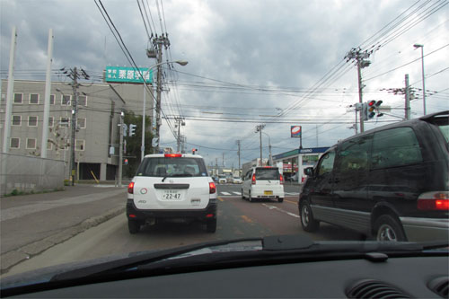 午前7時50分、北4条通りの国道39号交差点から緑園通り方向