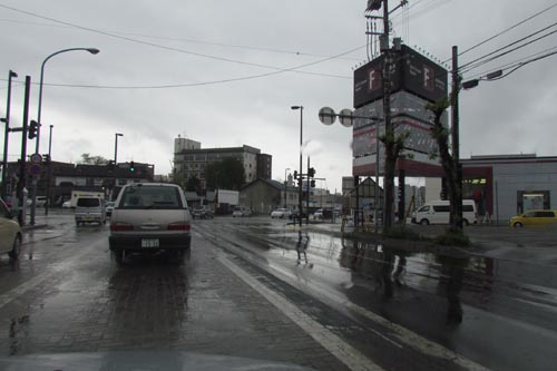 常盤通り、北見市民会館正面ゲート前から国道39号の五差路方向