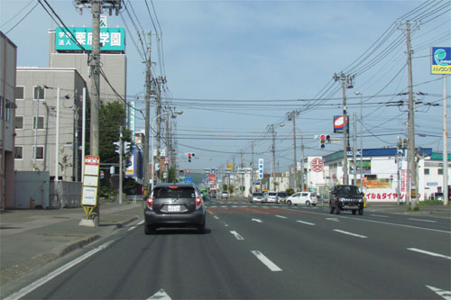 午前7時50分、北4条通りの国道39号交差点から緑園通り方向