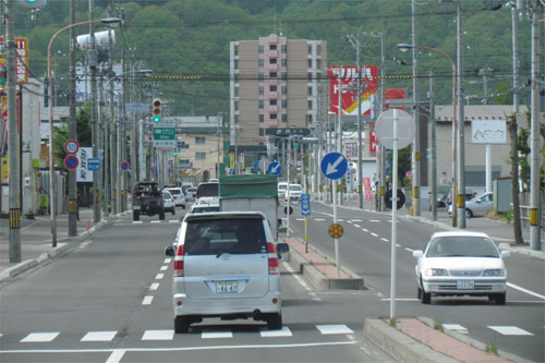 とん田通り、南大通り交差点を過ぎて無加川橋方向