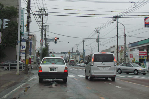 午前7時50分、北4条通りの国道39号交差点から緑園通り方向