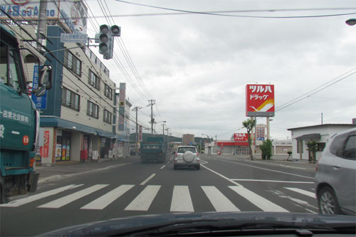 とん田通り、北見中央病院側から南大通り交差点方向