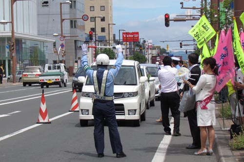 午前11時過ぎ、北見駅前広場で行われた「夏の交通安全運動」