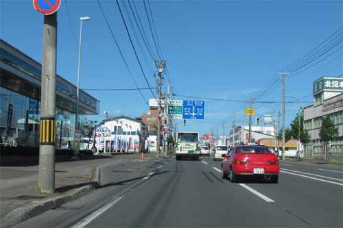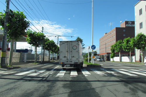 午前7時50分、北4条通りの国道39号交差点から緑園通り方向
