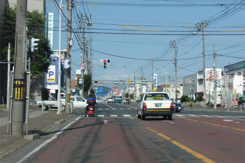 午前7時50分、北4条通りの国道39号交差点から緑園通り方向