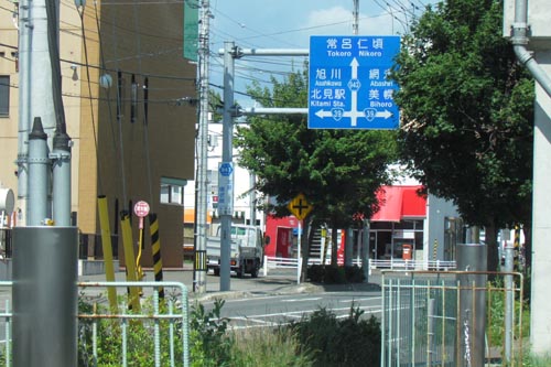 前方がJR石北本線高架橋、写真右が北見駅方向