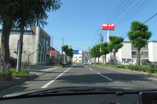 道路の向こう、正面がヤマデン、右が寺前歯科