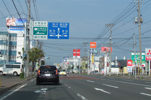 午前7時50分、北4条通りの国道39号交差点から緑園通り方向