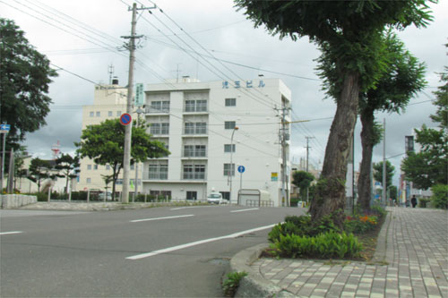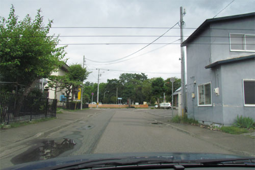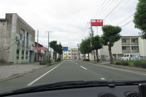 道路の向こう、正面がヤマデン、右端が寺前歯科