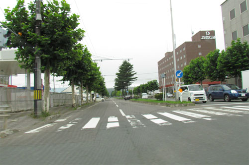 午前7時50分、北4条通りの国道39号交差点から緑園通り方向