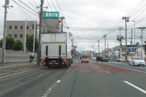 午前7時50分、北4条通りの国道39号交差点から緑園通り方向