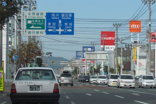 午前7時50分、北4条通りの国道39号交差点から緑園通り方向