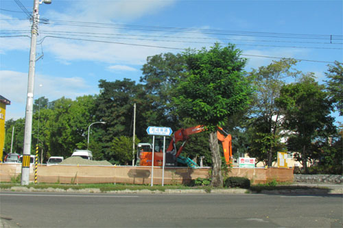 道路の向こう、正面がヤマデン、右端が寺前歯科