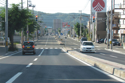 とん田通り、無加川橋から錦町の南岸通り交差点