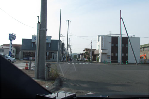 道路の向こう、左がオーディオのヤマデン、右が寺前歯科