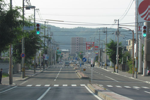 とん田通り、無加川橋から錦町の南岸通り交差点