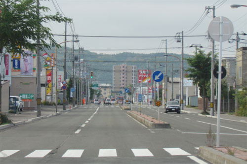 とん田通り、北見中央病院側から南大通り交差点方向