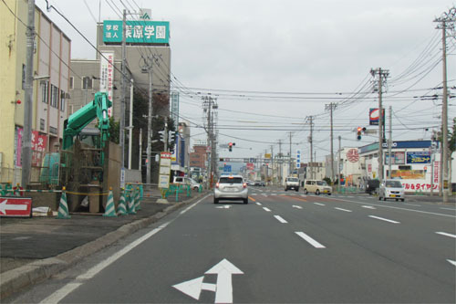午前7時50分、北4条通りの国道39号交差点から緑園通り方向