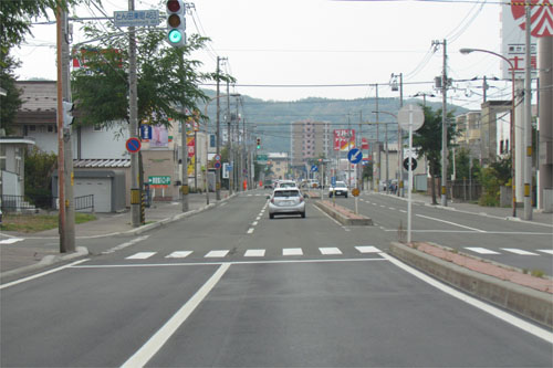 とん田通り、無加川橋から錦町の南岸通り交差点