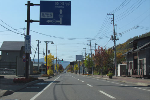 午前11時前、国道242号、置戸町北光の坂から置戸市街方向