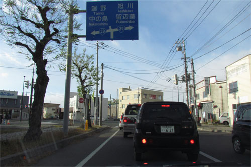 道路の向こう、左がオーディオのヤマデン、右が寺前歯科