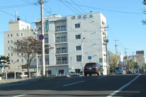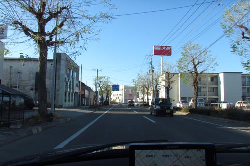 道路の向こう、左がオーディオのヤマデン、右が寺前歯科