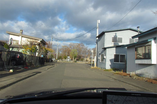道路の向こう、左がオーディオのヤマデン、右が寺前歯科