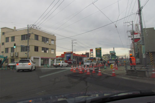 午前7時50分、北4条通りの国道39号交差点から緑園通り方向