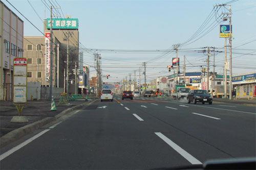 午前7時50分、北4条通りの国道39号交差点から緑園通り方向