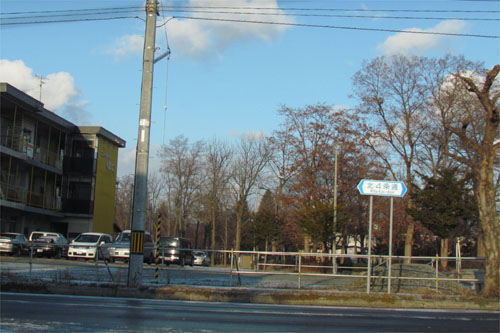 道路の向こう、左がオーディオのヤマデン、右が寺前歯科
