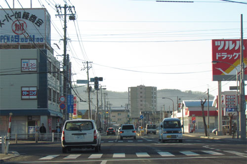 とん田通り、無加川橋から錦町の南岸通り交差点