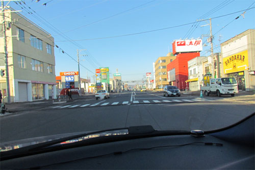 午前7時50分、北4条通りの国道39号交差点から緑園通り方向