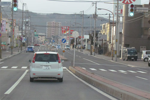 とん田通り、南大通り交差点を過ぎて無加川橋手前の交差点