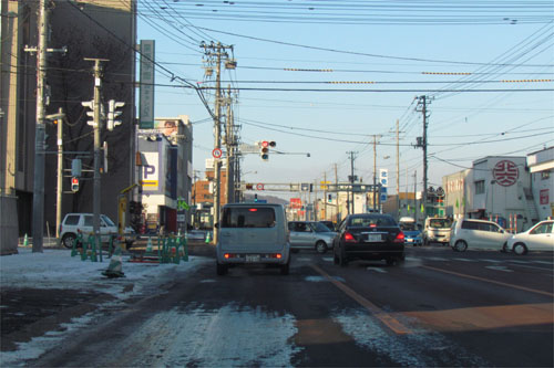 午前7時50分、北4条通りの国道39号交差点から緑園通り方向