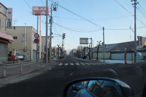 末広町の南岸通り、西4号線バス停前から野付牛自動車学校方向
