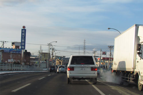 午前7時50分、とん田通り、北見中央病院