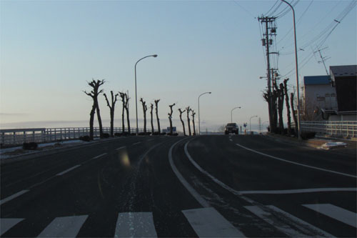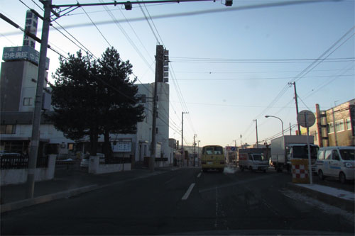 午前7時50分、とん田通り、北見中央病院
